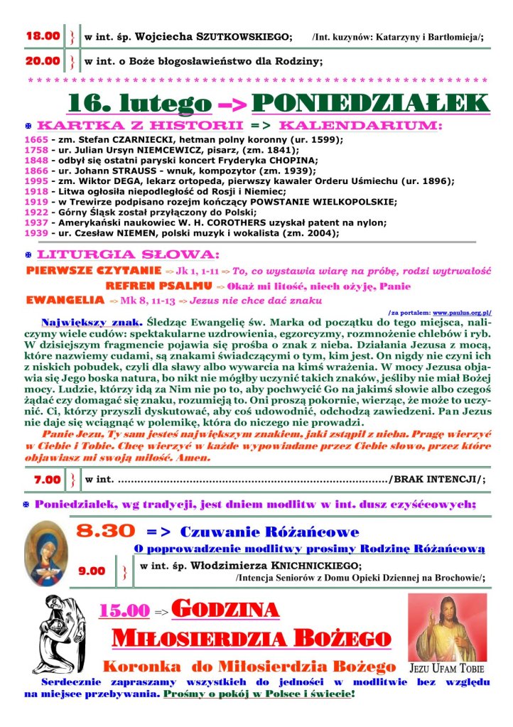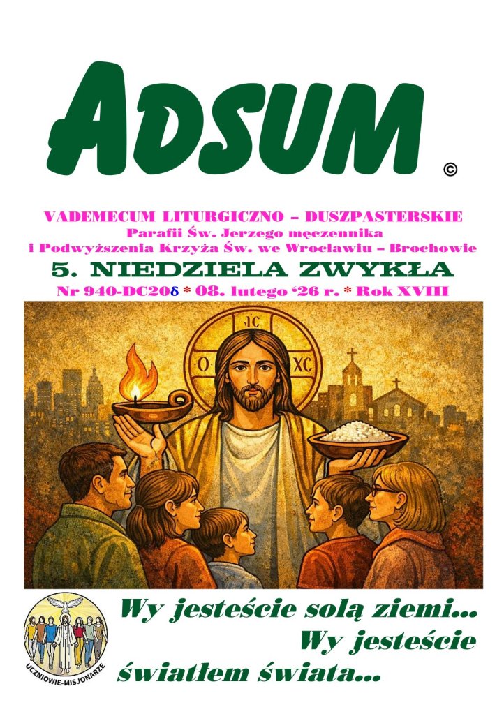 6 lutego 2026 redaktorparafiabrochow Adsum 5. NIEDZIELA ZWYKŁA Udostępnij: Udostępnij na X (Otwiera się w nowym oknie) X Udostępnij w serwisie Facebook (Otwiera się w nowym oknie) Facebook Lubię Wczytywanie… Powiązane
