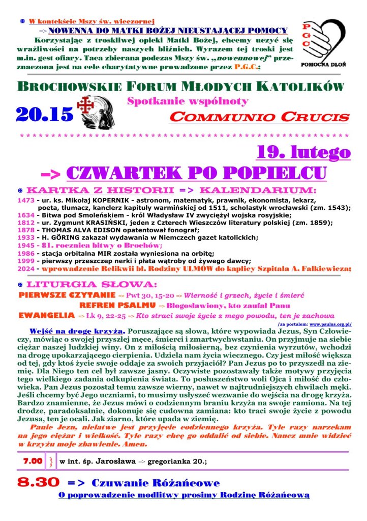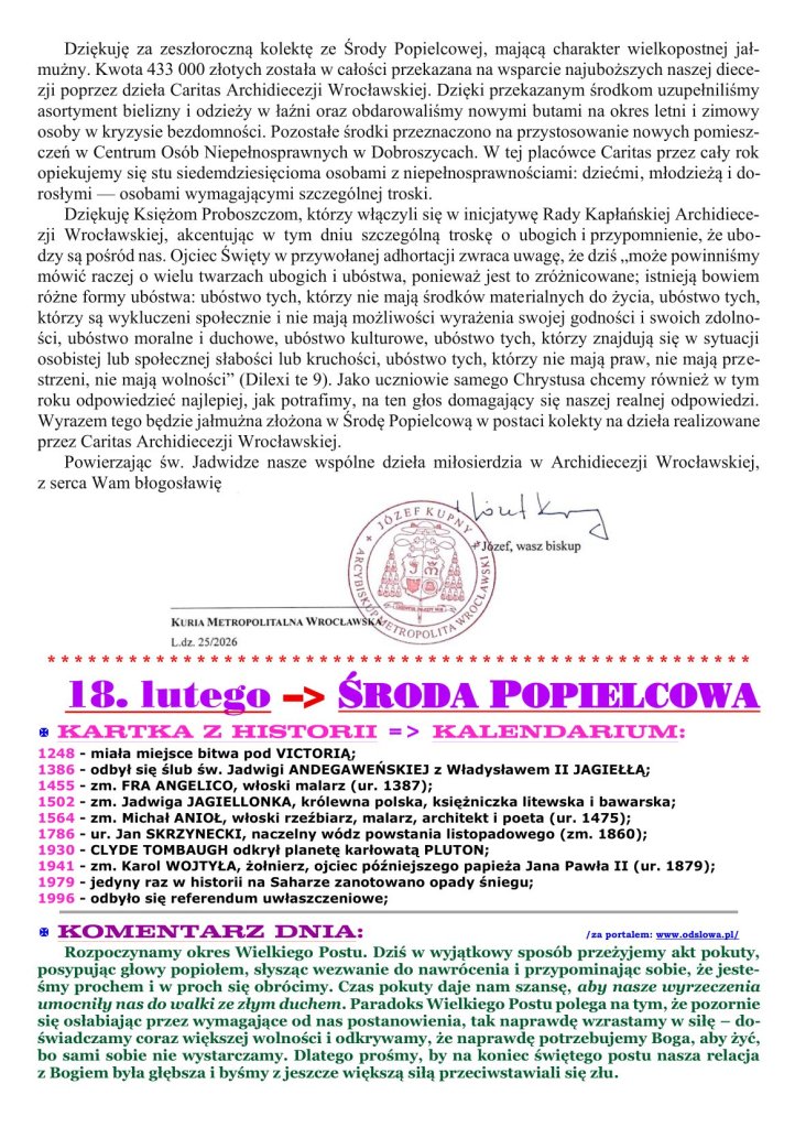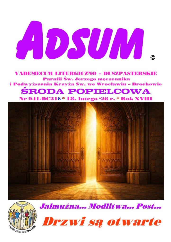 11 lutego 2026 redaktorparafiabrochow Adsum 6. NIEDZIELA ZWYKŁA – ŚRODA POPIELCOWA Udostępnij: Udostępnij na X (Otwiera się w nowym oknie) X Udostępnij w serwisie Facebook (Otwiera się w nowym oknie) Facebook Lubię Wczytywanie… Powiązane
