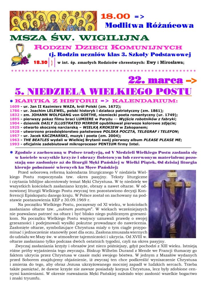 13 marca 2026 redaktorparafiabrochow Adsum NIEDZIELA LAETARE Udostępnij: Udostępnij na X (Otwiera się w nowym oknie) X Udostępnij w serwisie Facebook (Otwiera się w nowym oknie) Facebook Lubię Wczytywanie… Powiązane