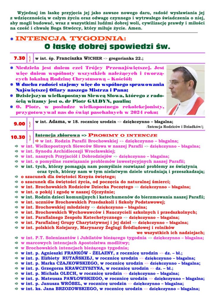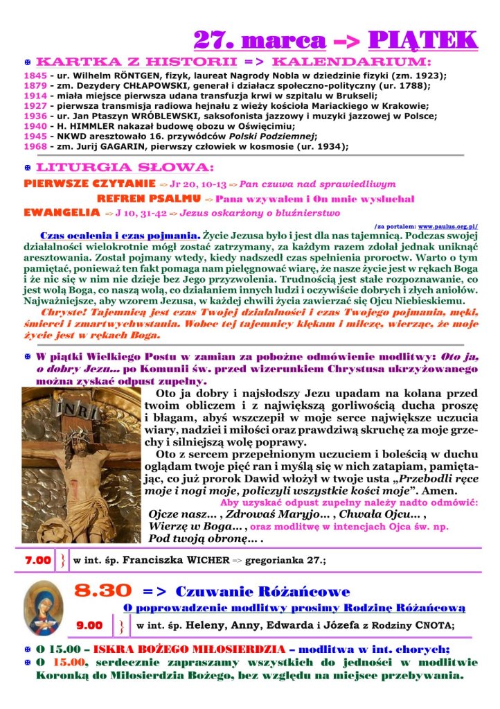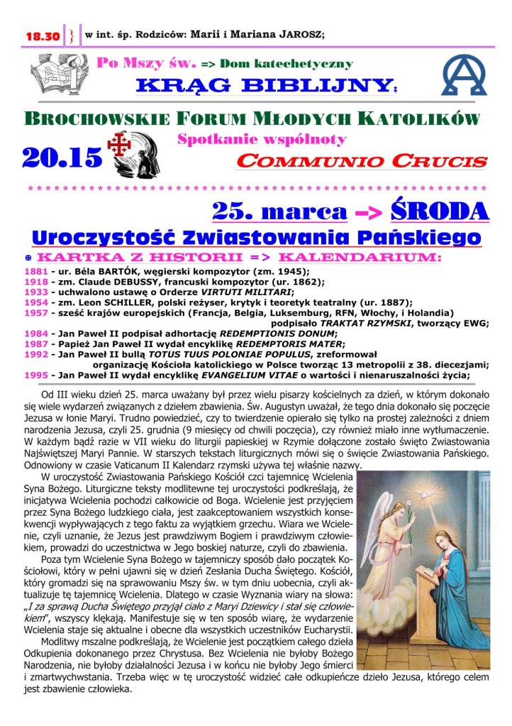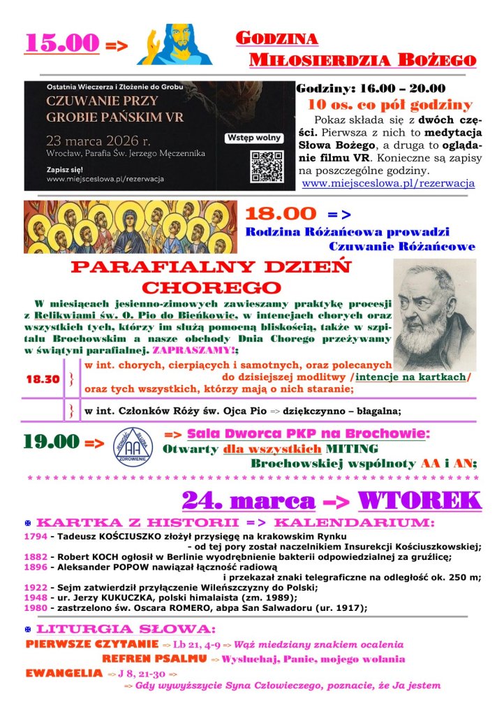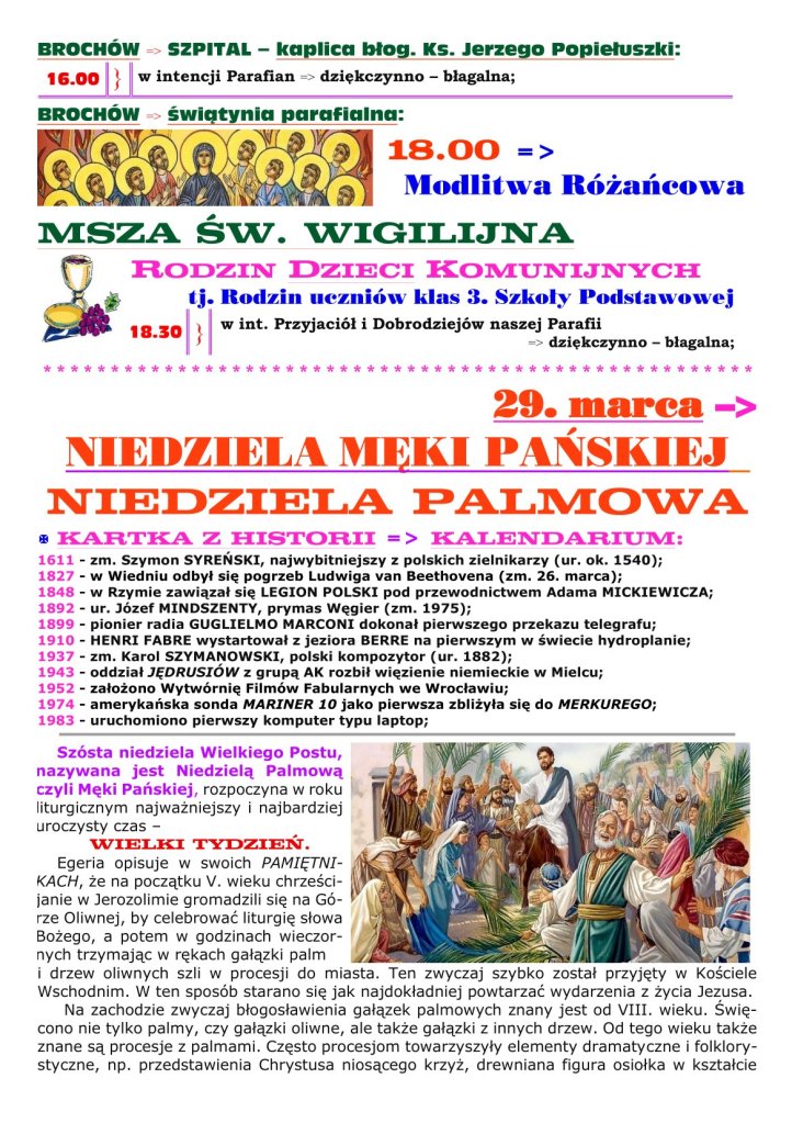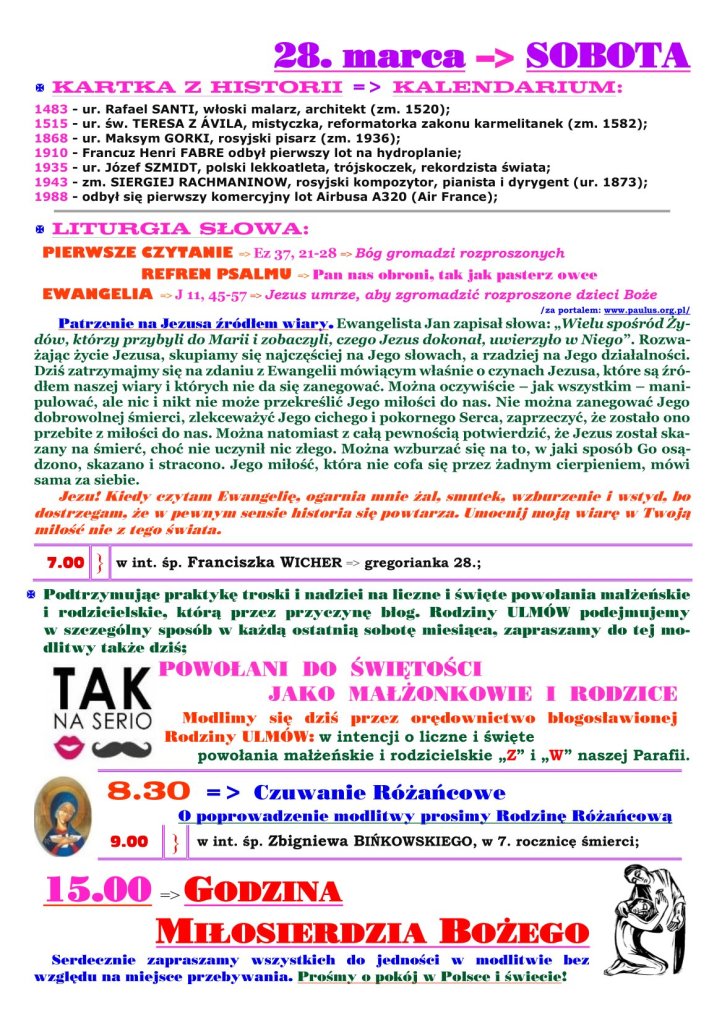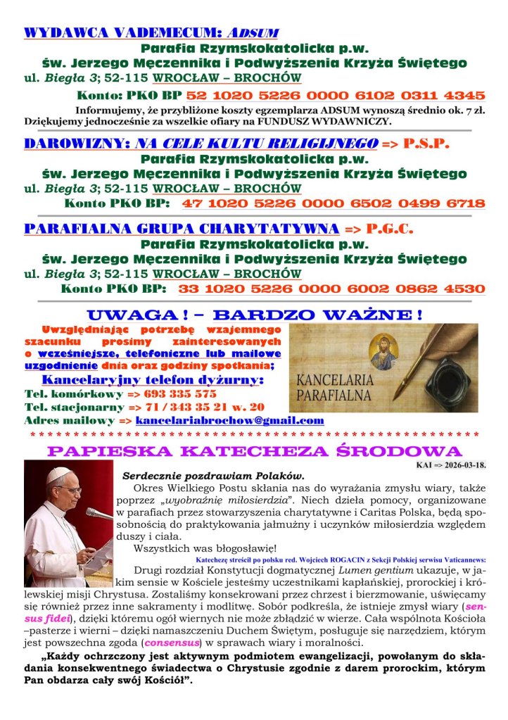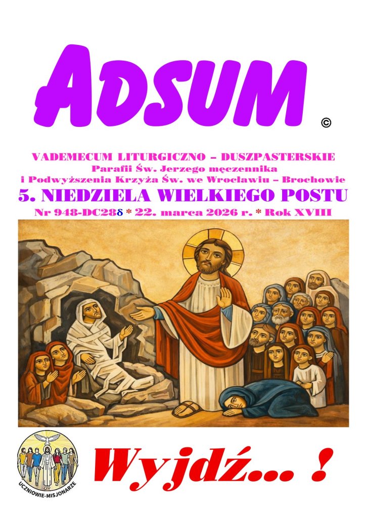 18 marca 2026 redaktorparafiabrochow Adsum 5. NIEDZIELA WIELKIEGO POSTU Udostępnij: Udostępnij na X (Otwiera się w nowym oknie) X Udostępnij w serwisie Facebook (Otwiera się w nowym oknie) Facebook Lubię Wczytywanie… Powiązane