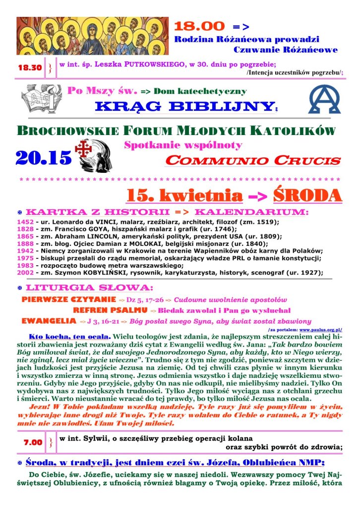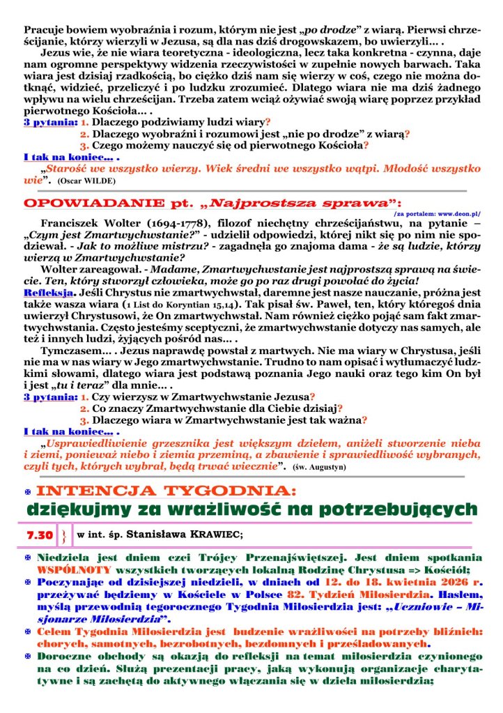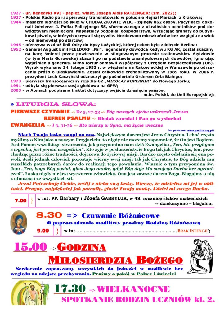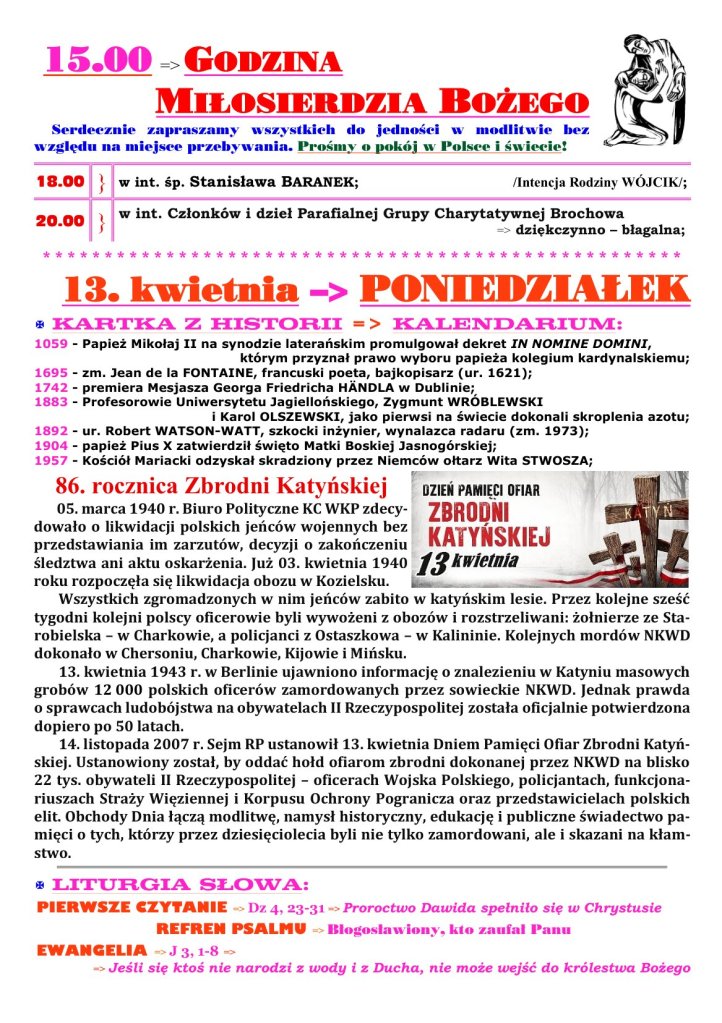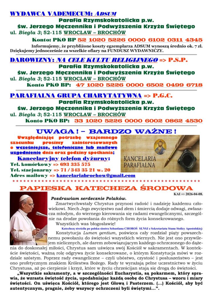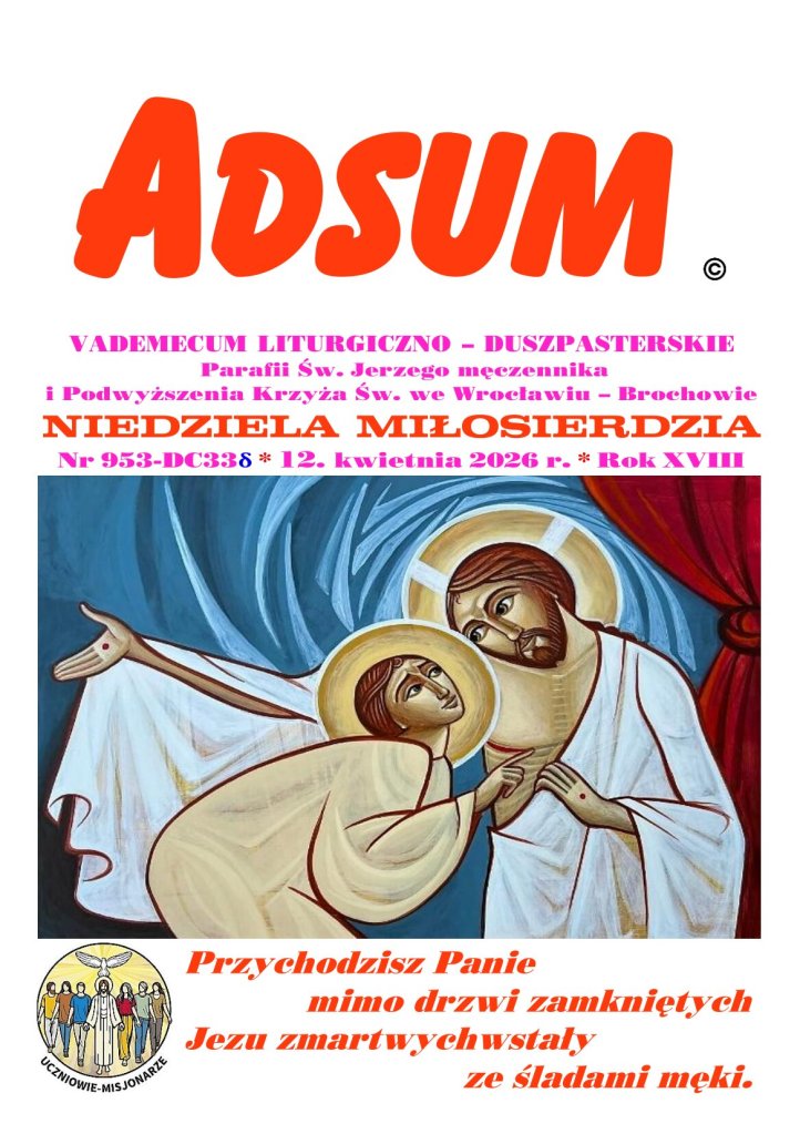 11 kwietnia 2026 redaktorparafiabrochow Adsum NIEDZIELA MIŁOSIERDZIA Udostępnij: Udostępnij na X (Otwiera się w nowym oknie) X Udostępnij w serwisie Facebook (Otwiera się w nowym oknie) Facebook Lubię Wczytywanie… Powiązane