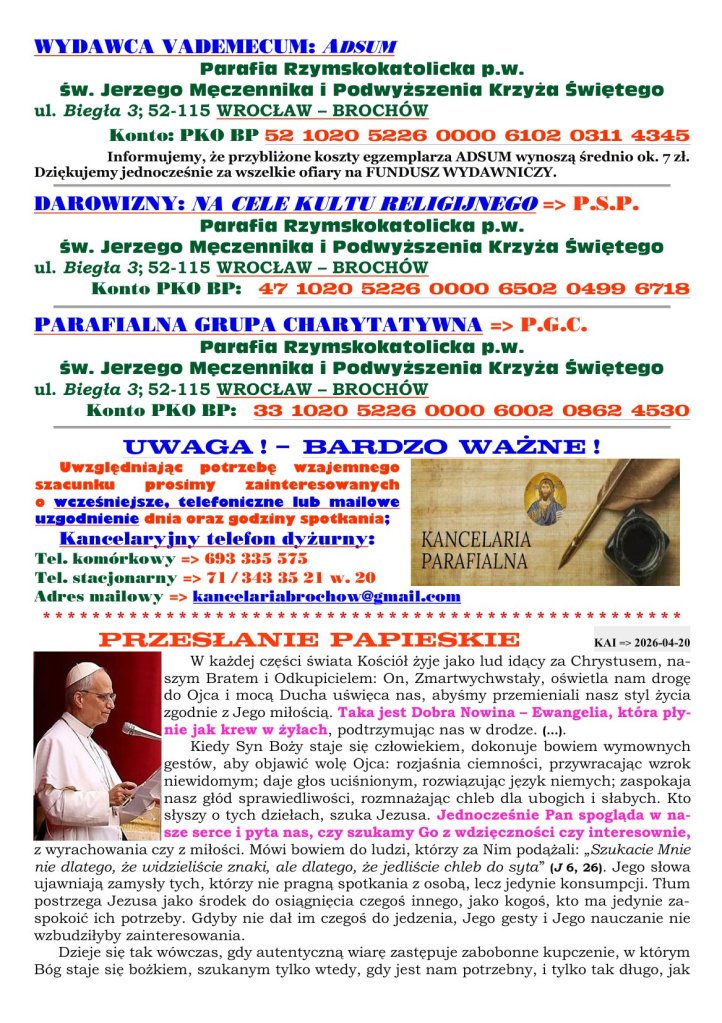 25 kwietnia 2026 redaktorparafiabrochow Adsum NIEDZIELA DOBREGO PASTERZA Udostępnij: Udostępnij na X (Otwiera się w nowym oknie) X Udostępnij w serwisie Facebook (Otwiera się w nowym oknie) Facebook Lubię Wczytywanie… Powiązane